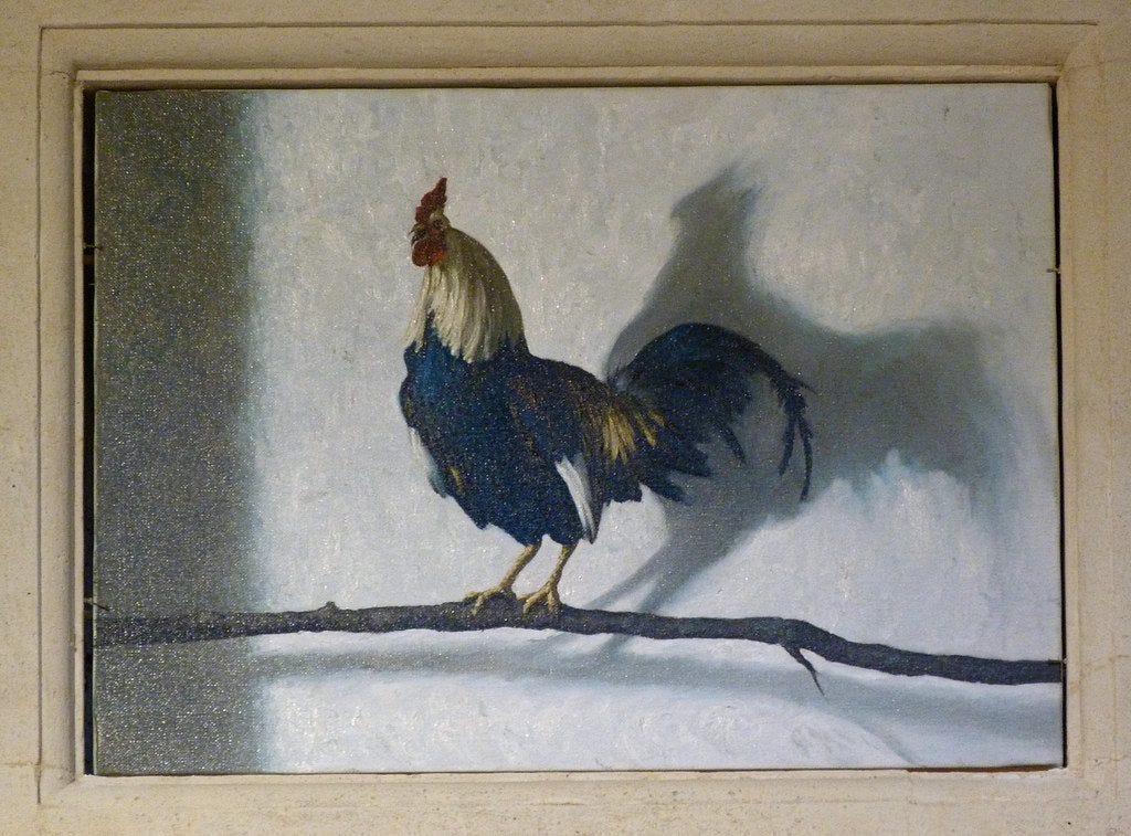 Again Peter denied it, and at that moment the cock crowed. (18:26b-27)